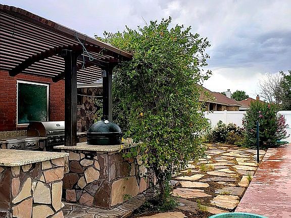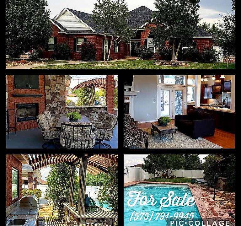 This home features a lot of unique things. Inside the house is a custom layout with nice floors and high vaulted ceilings with recessed lighting and lots of ceiling fans to move air. Additional insulation in attic for efficiency. The best feature of the home is the outdoor living space. It has 3 separate porches, outdoor bathroom, outdoor kitchen, hot tub, large gunite in ground pool, and fire pit. Feature gas appliances throughout the home. This home also has two garages that fit 2 cars each or one can serve as a workshop or storage. The attic in this house is very large for storage. The hotter heater in the home is only about 3 years old and has a new roof. There is also a plan to add a bedroom with local contractor and bricks are already purchased. Contact Ryan 575-791-9945
