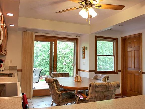 Enjoy tranquil living in this immaculate ranch, resting on a beautiful 1.08 acre lot with mature trees and landscaping designed to attract local wildlife. Large light & airy eat-in kitchen spills out onto deck overlooking ornamental pond with waterfall. Convenient den/office area located off kitchen. Two ample sized bedrooms with deep double closets in each. 11x9 storage room on lower level and additional 11x8 storage area in garage. 15x13 lower level room studded out and ready to be made into family room or additional bedroom. After owner purchased home, main level was completely gutted & remodeled along with the exterior. Start your life of leisure here!