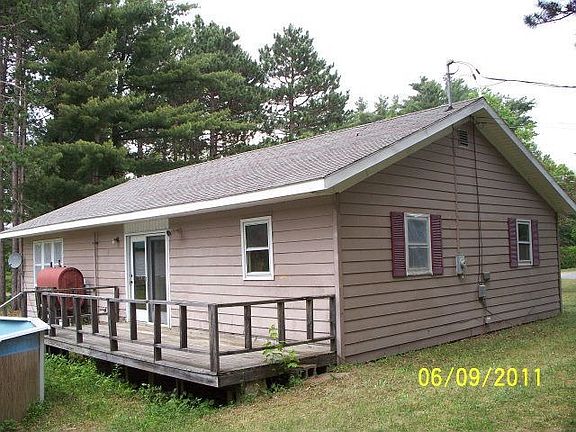 OWNER FINANCING AVAILABLE ON THIS RANCH HOME SET WITH 3.4 ACRES AND PINE FOREST. 1260 Sq. Ft. ranch home w/3 bedrooms, large living room w/french doors to 23' deck & above ground swimming pool (needs repairs), dining room w/parquet wood flooring, kitchen w/island, tons of cabinetry & french doors to small deck. 8 x 16 shed w/concrete floor & electric is included. Shared well. 3.5 acre lot is beautiful w/towering pines surrounding the sandy soiled lot. 2011 Municipal Full Market Value is $69,677.