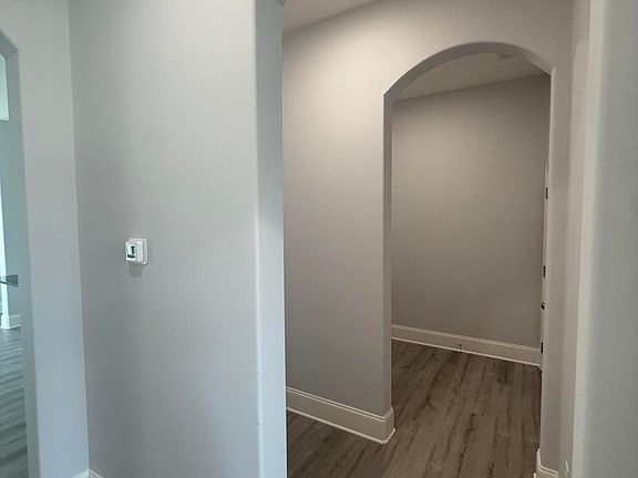 Move-In Ready! This beautifully crafted home combines timeless design with modern comfort, offering 3 spacious bedrooms, 2 full bathrooms, and a 2-car garage. A striking 8-foot front door creates a grand first impression and opens into an inviting open-concept floor plan highlighted by luxury vinyl plank flooring and elegant arched drywall openings. The thoughtfully designed split-bedroom layout ensures privacy, with two generously sized secondary bedrooms featuring large closets and easy access to a stylish full bath with a granite-topped vanity. The private owner's suite is a true retreat, showcasing a beamed tray ceiling with crown molding, a spa-like bath with double vanity, a custom-tiled walk-in shower, and an expansive walk-in closet. The gourmet kitchen is a chef's dream—featuring white custom cabinetry, gleaming granite countertops, a built-in oven and microwave, smooth surface cooktop range, and a spacious island ideal for meal prep or casual dining. The open flow makes entertaining seamless, whether hosting family gatherings or quiet evenings at home. Additional highlights include a dimensional shingle roof for lasting durability, tall 6-foot windows in the bedrooms that flood the home with natural light, and countless upgraded finishes and charming details throughout. This brand-new home is truly move-in ready, offering a perfect balance of comfort, style, and quality craftsmanship. Don't miss your chance to make it yours!