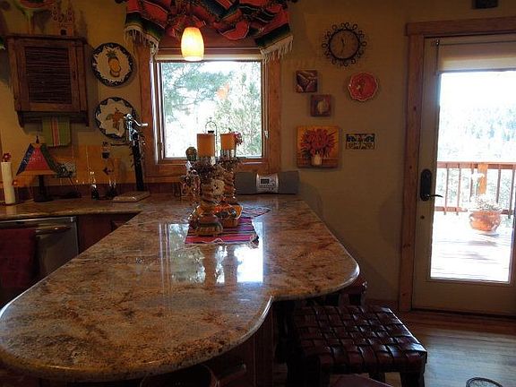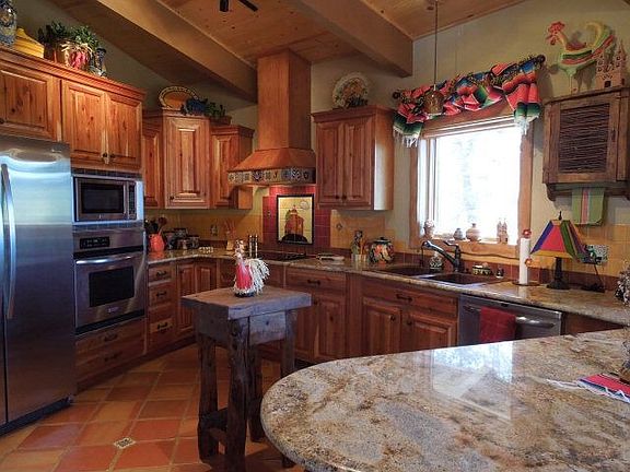 SOUTHWESTERN BEAUTY ON NEARLY 1 ACRE IN SUN VALLEY. NO EXPENSE WAS SPARED IN THE TOTAL HIGH END REMODEL OF THIS NEW MEXICO GEM. CAPTIVATING ARCHITECHTURAL DETAILING THAT WILL MELT YOUR HEART! FROM KIVA FIREPLACE, ORIGINAL OAK FLOORS, CUSTOM TILE INLAYS, HAND CARVED DOORS, SALTILLO TILE W/ TALEVARA DECOS, DESIGNER LIGHTING & FIXTURES, GRANITE KITCHEN W/ STAINLESS APPLICANCES, THERE ARE CUSTOM FEATURES AT EVERY TURN. GUESTS CAN RELAX IN SUNKEN KIVA FIRE PIT WITH HIGH DOMED CEILING OR ENJOY THE ROCKY MTN. VIEW FROM SUNNY REDWOOD DECK. 3 BEDROOMS & BATH ON MAIN LEVEL. DOWNSTAIRS IS PRIVATE MASTER SUITE WITH HAND HAMMERED COPPER SOAKING TUB & SINK. WALK IN CLOSET. DON'T MISS STOREROOM.