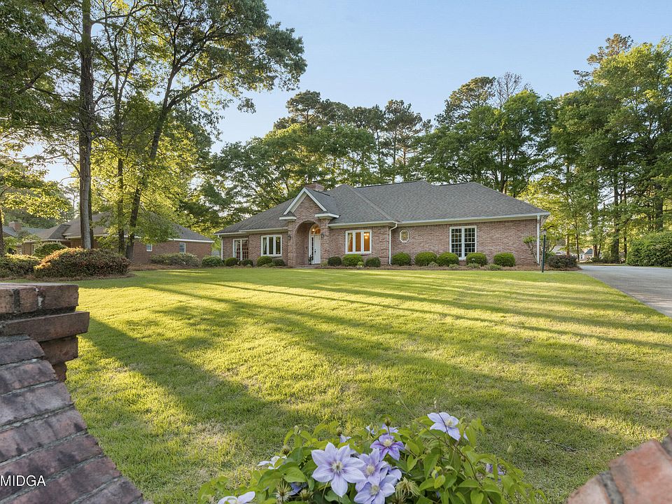 Welcome to this stunning four-sided brick ranch located on the 10th hole of Southern Landings Golf Course in Warner Robins. This beautifully maintained home features a desirable split floor plan, offering both privacy and comfort. Enjoy spacious living areas, a well-appointed kitchen, and serene golf course views right from your backyard. Perfect for entertaining or relaxing in style—this home is a rare find in a sought-after location with a beautifully landscaped lot. Professional pictures added soon.