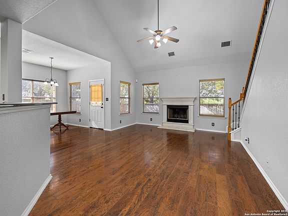 Welcome to this charming 4-bedroom, 2.5-bathroom home in the friendly and peaceful Heights of Cibolo community. Nestled in a quiet cul-de-sac, this home offers easy access to the community pool and amenities, making it the perfect place to live and unwind. The master bedroom is conveniently located on the first floor, offering a private retreat with a walk-in shower, double vanities, and a spacious closet. You'll appreciate the easy access to the kitchen and laundry room from the master. The main living area features a cozy fireplace that adds warmth and character to the space, while the spacious kitchen is perfect for cooking and entertaining. Upstairs, enjoy a versatile loft space that's ideal for family activities or relaxation that also boasts all the remainder of the bedrooms so you truly do have a separate floorplan. The tough shed in the backyard conveys which is awesome so you have more garage space as well! The price reflects the current condition of minor cosmetic updates and repairs needed.