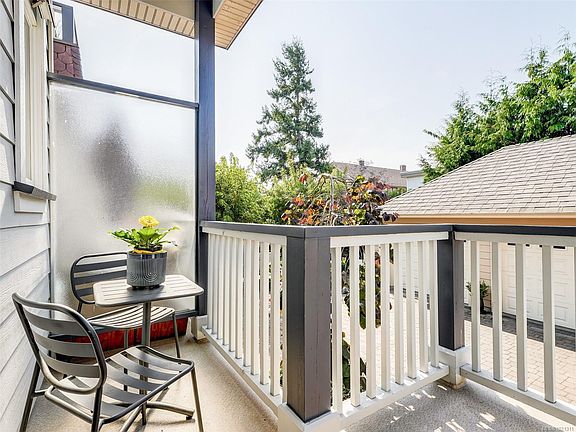 On a lovely tree lined street in a prime James Bay location, you’ll love this stunning 2 bedroom/3 bathroom south facing corner unit townhome. The main level has impressive 10 foot ceilings and a well designed open layout with maple floors. elegant chef's kitchen with stone counters, s/s appliances and island with a prep sink. Lovely feature gas fireplace in the living room, a dining area, powder room and laundry. Sunny front porch. Upstairs, the elegant primary bedroom offers luxury with a walk-in closet and ensuite with heated stone tile floor plus its own balcony to enjoy the sunsets. Beautiful new carpet. Good sized second bedroom and stylish main bathroom with walk-in shower and heated tile floors. Don't forget the large heated lower storage space. Separate heated garage. Pet friendly! This quiet, private townhouse is on sunny side of this well-maintained 4-unit complex. Only a short walk to excellent amenities, great restaurants, shopping and Victoria's vibrant Inner Harbour.