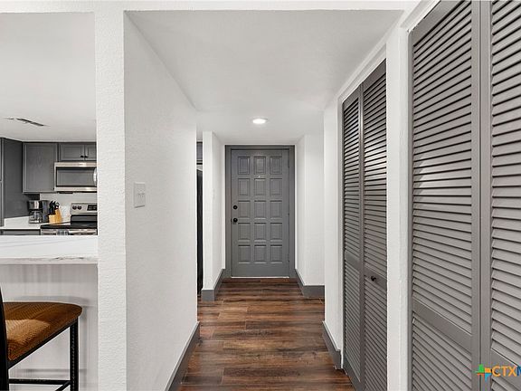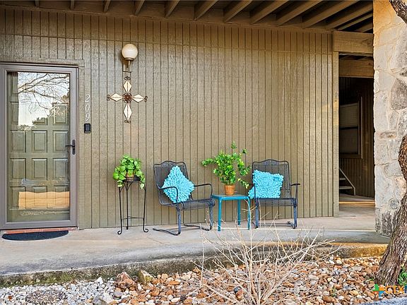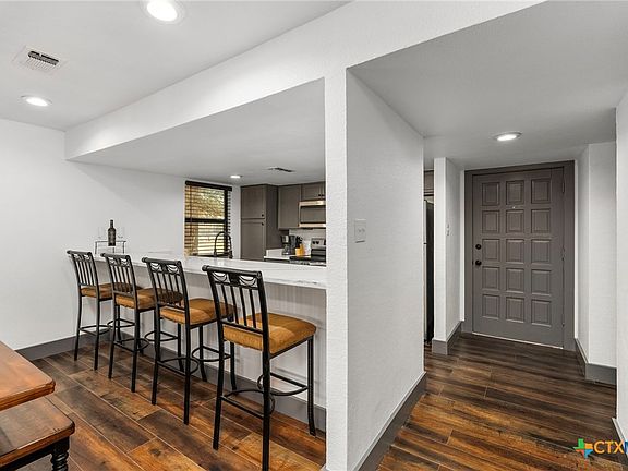 Discover resort-style living in this beautifully renovated first-floor condo at T Bar M in New Braunfels! This 2-bedroom, 2-bathroom unit is ideally located just steps from the tennis courts and a short walk to the Villa Pool, offering both convenience and tranquility.
