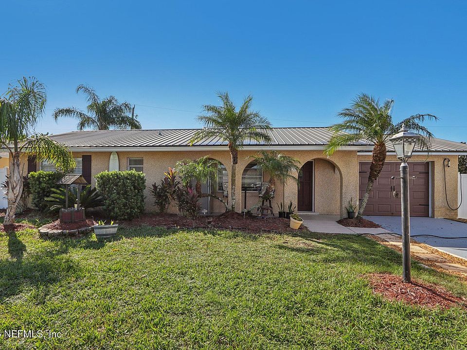 Just a short walk to the beach, this beautifully maintained single-story home pool home offers the perfect blend of comfort, convenience, and coastal charm. 3 bedrooms and 2 full bathrooms, this property boasts brand new floors, fresh paint, and a bright and open layout! Enjoy year-round relaxation in the spacious air-conditioned sunroom overlooking your private in-ground, heated, salt water pool. The pool deck and driveway were just painted! The home is not in a flood zone, connected to city sewer, and comes with no HOA, giving you freedom and peace of mind. Brand new RV Electrical plug. Concrete block home features a Coquina outer finish. Recent updates include a brand-new A/C system and ductwork, ensuring efficient comfort throughout the year. Additional features include electric vehicle charging, and ample space to park your RV and boat. New blown-in insulation and new gutters were also added. Move in ready beach house!