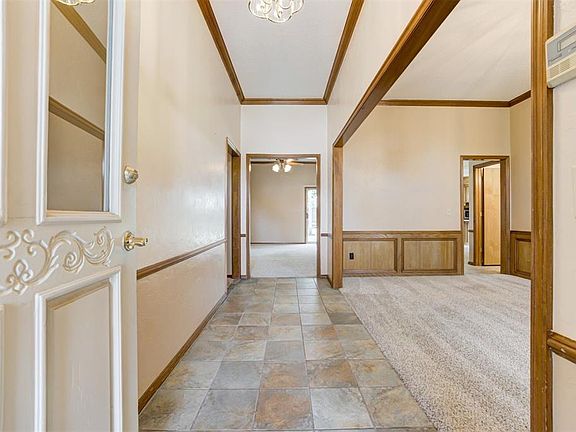 This beautifully appointed home in the sought-after Yukon area showcases exceptional millwork, spacious living areas, and custom built-ins throughout, offering both function and timeless character. As you walk into the home, you have a spacious foyer to greet guests, with a formal dining room to the right of the entrance. The foyer then opens up to the spacious living room with a gas fireplace and floor-to-ceiling built-ins. The kitchen is brimming with potential with its spacious floor plan and flow that would be ideal for any home chef! With 4 bedrooms plus a dedicated office—complete with a large closet that allows for use as a 5th bedroom—this home provides versatility for any lifestyle. Each secondary bedroom is thoughtfully designed with its own walk-in closet, ensuring ample storage for all.