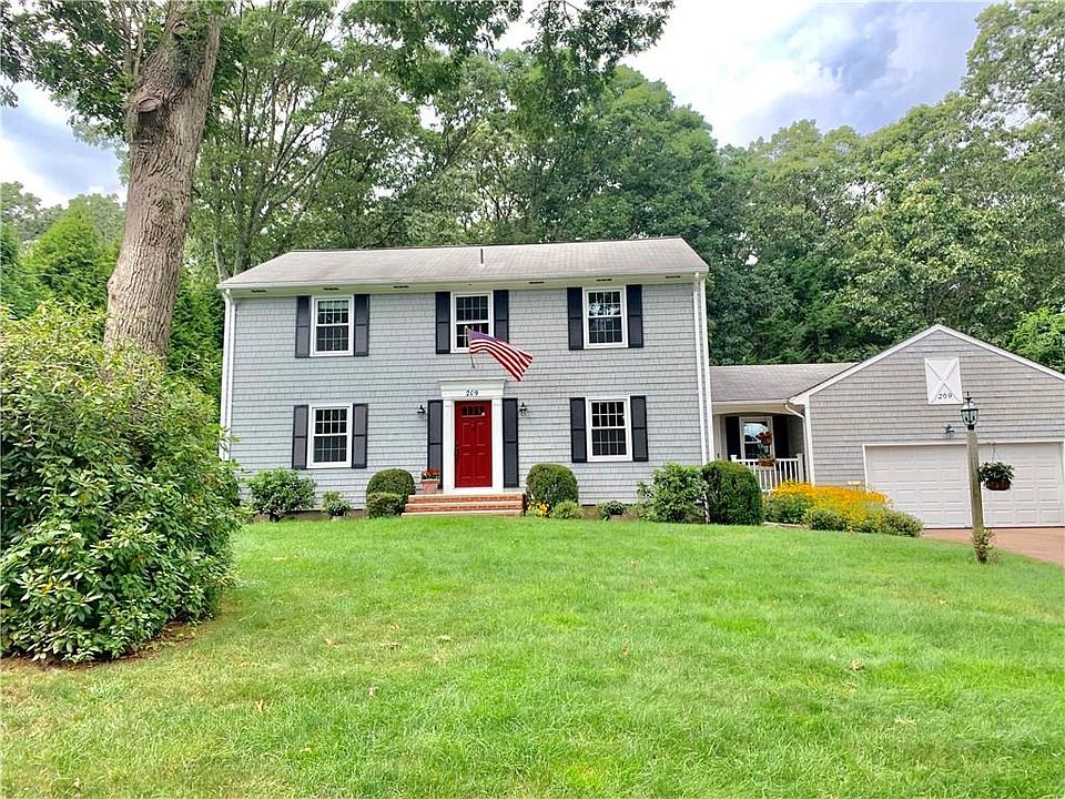 Custom built one owner Colonial in Greenwood on over an 1.5 acres of land. This 4 bedroom home boasts hardwoods floors, eat in kitchen, kitchen with new stainless steel appliances. Formal dining and living rooms, half bath with laundry on first floor, family room with fireplace and sliders to patio, master bedroom with bathroom and full finished lower level. Attached two car garage, updated gas heat, central air, mature landscaping with lots of perennials, freshly painted exterior, connected to sewers and replacement windows. Unique lot for the area creates a lovely private yard! Close to all amenities and highway access!