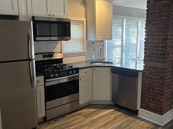 Adorable kitchenFull basement for storageHalf bathOriginal wood floorsExposed brick chimneyOpen front porchBonus hobby room
