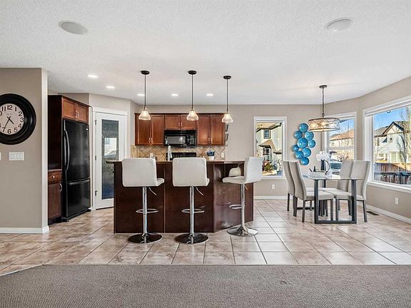 Welcome to 209 New Brighton Lane, a warm and inviting home set on a large corner lot in one of Calgary’s most loved family communities. This property offers a practical layout and thoughtful upgrades that provide comfort, reliability, and room to grow. Inside, the main floor is bright and welcoming with large windows that bring natural light into the kitchen, dining, and living areas. The living room is centered around a stone fireplace that adds warmth and character. The kitchen offers rich cabinetry, a central island with seating, and clear sightlines toward the backyard for easy connection during family gatherings or everyday routines. Upstairs, the spacious bonus room serves as an ideal second living area for movie nights, games, or unwinding together. The primary bedroom provides a calm retreat with its own ensuite featuring a soaker tub and a walk-in closet. Two additional bedrooms and a full bathroom complete the upper level, offering comfortable spaces for family or guests. The unfinished basement is roughed in for a bathroom and ready to become whatever your home needs next, whether that is a recreation area, home gym, office, or additional bedroom and bathroom. One of the standout features of this property is the backyard. The large PVC deck was designed for everyday living and year-round enjoyment. Soft lighting integrated into the steps adds an inviting glow in the evenings, creating a warm atmosphere for relaxed family time or gatherings with friends. There is more than enough space for both an outdoor dining area and a lounge setup, making it feel like a true extension of the main living space. The yard is fully fenced with plenty of room to play, complete with a play structure and storage shed, making it easy to settle in and start enjoying the space right away. This home has been exceptionally well cared for. Key upgrades include furnace and air conditioning (2018), heated garage (2018), new water heater (2025), new roof (2025), large outdoor deck (2021), and exterior trim refresh (2022), BBQ gas line, and indoor and outdoor speaker systems to add comfort and enjoyment to daily life. New Brighton is known for its welcoming family atmosphere, parks, beautiful ponds, playgrounds, and excellent community amenities. Residents enjoy access to the New Brighton Clubhouse with a splash park, tennis courts, volleyball, skating, and year-round programming. The community is close to schools, grocery stores, restaurants, and everyday conveniences. South Health Campus is approximately 10 minutes away and quick access to both Deerfoot and Stoney Trail make commuting easy. This is a home designed for family life, connection, and comfort in a community built for belonging.