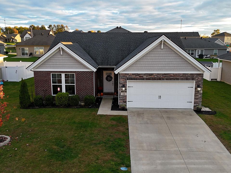 Welcome to 209 W Stellar Way, a home that feels like a fresh start wrapped in cozy holiday magic! Built in 2019, this 3-bedroom, 2-bath beauty offers modern comfort with a touch of charm. Enjoy open-concept living perfect for gathering around the tree or hosting holiday dinners. The kitchen flows effortlessly into the living space, making entertaining easy and inviting. Step outside to a peaceful yard ready for twinkling lights and winter nights by the firepit. Perfectly located in the heart of Huntingburg — this one truly shines bright for the season.