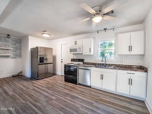 Welcome to 209 Wallington Road, a move-in ready under 300k fantastic starter home in a prime Wilmington location with quick access to Wrightsville Beach, downtown, shopping, dining, and everything in between! Inside, you'll love the open-concept layout that connects the kitchen and living area, creating a bright, functional space perfect for everyday living and entertaining. The home features durable LVP flooring throughout for a clean, refreshed feel, and the kitchen is updated with white cabinetry, a subway tile backsplash, and stainless dishwasher. Outside, enjoy the freedom of no HOA, a fully fenced backyard ideal for pets or play, and a concrete driveway that offers ample parking space. A large enclosed porch adds valuable flexibility, providing extra storage, hobby space, or a comfortable spot to enjoy the outdoors with added protection from the elements. This home checks all the boxes for comfort, convenience, and affordability in one of Wilmington's most accessible areas. Schedule your showing today!