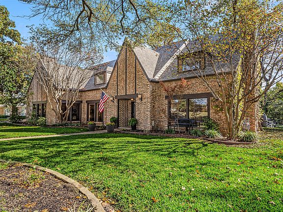 Welcome to this stunning custom-built English Tudor tucked in the heart of McKinney, Texas—nestled in a well-established neighborhood with no HOA and surrounded by timeless charm. From its classic ivy-covered exterior to its warm, inviting interior finishes, this home blends old-world craftsmanship with modern comfort. Step inside and be greeted by an impressive staircase, custom wood paneling, intricate molding, and high-end lighting that set the tone for the entire home. The library, complete with rich built-in shelving, offers the perfect space for work or quiet retreat. The chef’s kitchen features handcrafted hardware, gas cooktop, custom cabinetry, and a spacious utility room with elevated design elements. The great room stands as the heart of the home—showcasing beautifully stained paneling, exposed wood beams, a cozy lodge-style fireplace, additional staircase and a charming wet bar ideal for entertaining. The primary suite is a thoughtfully designed retreat, offering his and her closets and dressing areas complete with vanity, jacuzzi tub and walk in shower. Upstairs, you’ll find an office, a flex room, and three generous bedrooms. One of these bedrooms functions as a second primary suite, complete with its own en-suite bathroom—perfect for guests or multigenerational living. Outdoor living is where this property truly shines. Multiple French doors, with built in screens, open to an expansive backyard oasis featuring a pool and spa, extended covered patio, and a deck overlooking the creek. Mature shade trees provide privacy and ambiance, while a custom-built chicken house adds a unique touch of country charm. Home features Generac system ensuring uninterrupted comfort. This rare gem offers character, space, and lifestyle—located close to historic downtown McKinney, shopping, dining, and top schools, all in a neighborhood known for its care and charm. A beautiful blend of English elegance and Texas comfort—this is a home you simply must experience.