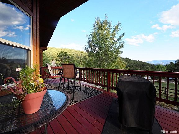 Welcome to Will-O-The-Wisp neighborhood in beautiful Bailey, CO! Family friendly, quiet, and one of a kind neighborhood featuring tons of amenities including park, trails, serene pond and more. Winter time brings picturesque moments including ice skating! Just minutes from shopping, dining, hiking and more, this home is perfect for anyone looking for quintessential mountain living with many conveniences. This home features vibrant aspens and stamped patio on ground level with an in-ground fire pit. Deck at front entrance above has sweeping mountain and meadow view’s. Inside you will find a welcoming kitchen, fully equipped and updated with Corian counters, stainless steel appliances and large island. Upstairs living features show stopping moss rock fireplace with a new gas insert.Two large bedrooms upstairs and full bath. Down the stairs you will feel one with nature as you gaze out of the large window with robust foliage outside. Downstairs features an additional bedroom with full bath, private entrance, laundry room and storage.Attached two car garbage is found downstairs right off the ground level entrance. Home’s roof has been replaced just two years prior. New screens were added recently as well.