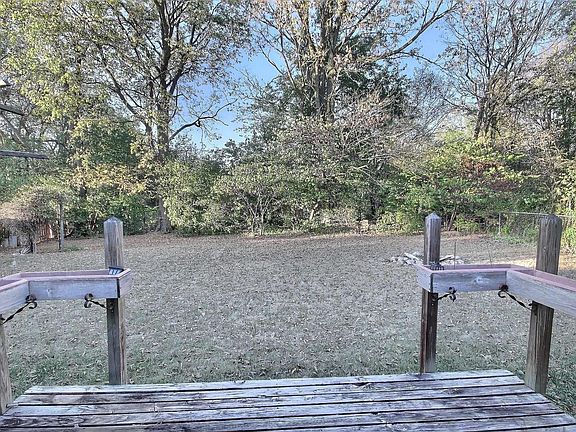 Chain-link fenced yardFirepit areaDining areaOverlooks the backyardSmall wooden deck