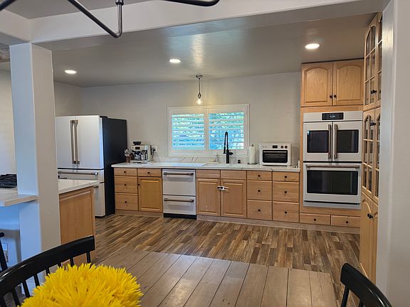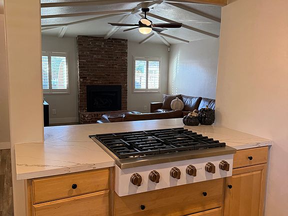 Well-established and highly desirable Eastside Turlock neighborhood! This cozy 3-bedroom, 2.5-bath home features a fully remodeled kitchen with quartz countertops and top-of-the-line appliances, all on a spacious 10,000+ sq ft lot. Highlights include beautifully refinished hardwood floors, a dream walk-in kitchen pantry with a barn door, a sunroom, a new gas fireplace insert, a whole-house fan, plantation shutters, and a bedroom with French doors opening to the patio and pool area. The backyard is a relaxing oasis with a stunning pool, multiple seating areas, built-in Trex deck seating with a gas fire chat table, a covered patio, and a farmhouse-style outdoor bathroom/changing space. Conveniently located within walking distance to Village Fresh shopping center, Julien Elementary, Turlock High, and the scenic walking path along the Canal.