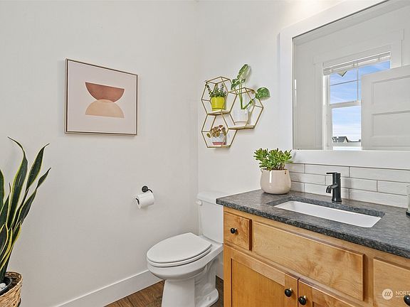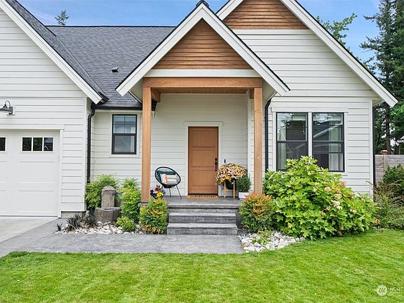 Elegant modern farmhouse-style home. 2,650 sf, 4 bed/2.5 bath w/ attached 2-car garage. Sited at end of cul-de-sac and close to Lynden amenities & schools. Close to Northwood corner market and parks. Hardwood floors throughout main level, cozy living room, shiplap & gas fireplace w/ wood mantle. Lots of storage! Primary bdrm has large walk-in closet, soaking tub, dual sinks, tile floor & walk-in shower. Beautiful kitchen w/ custom cabinets, granite counters, undermount sinks & SS appliances. Upstairs enjoy 2 large bdrms, bath, bonus room, & office nook. Outside find clean lines w/ natural wood contrast, slate stamped concrete & landscaping w/ unique basalt columns/bird bath. Privacy from adjoining greenbelt. This home is for you!
