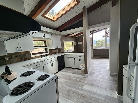 Perched on a mountainside this single family home brings all that the Rockies has to offer right to you. Directly out the windows enjoy the view of Marys Lake, just a jaunt across the street. A short walk gets you right to the lake, walking trails and picnic area. Recently updated with vinyl flooring and a spiffy modern bathroom with river rock, large window and a stone vessel sink. Easy drive to downtown or to Rocky Mountain National Park. Featuring 4 bedrooms and 3 bathrooms this home has plenty of room. Upgraded wood doors and accents throughout to bring the outdoors in while keeping it classy. 2 level living space, and an additional "green room" for the plants off the side. Washer/Dryer provided. No pets please. Limited parking.