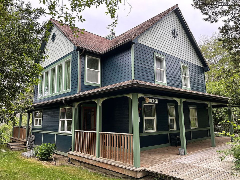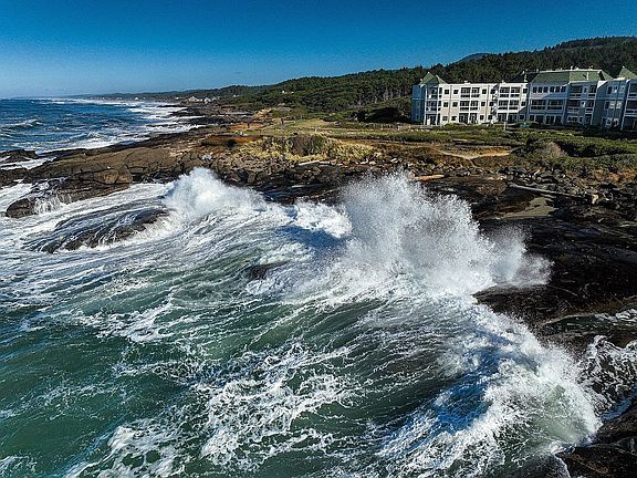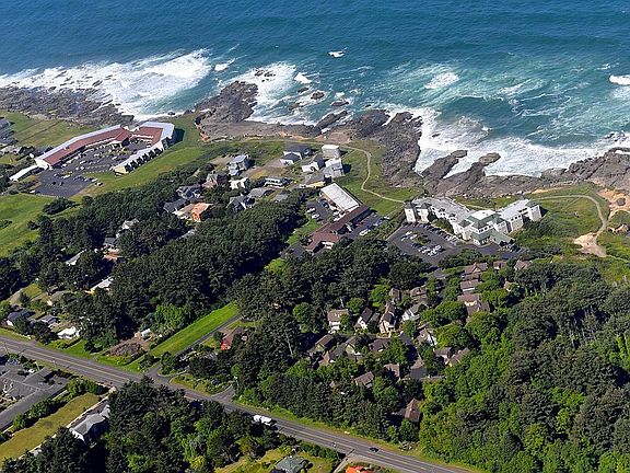 Located steps away from the breath-taking Pacific Ocean in the hip small town of Yachats on the Central Oregon Coast, Skookum Cottage is nestled above a creek with a view of the Pacific through the forest. Be lulled to sleep by the ocean, creek and salty breeze. The primary suite boasts a view, a gas fireplace, 2 large closets and spa like tile bathroom. A custom local river rock and agate fireplace warms the living room and first floor. A spacious sunroom on the second floor doubles as a bunkroom and bonus space. The bright and spacious laundry room has ample storage. The large partially finished attic has a view. Two large decks make this an ideal place for a family or multiple families to get away from it all while enjoying the splendor of the wild and spectacular coastline. This fully furnished and beautifully decorated retreat sleeps 15 as a vacation rental or a dreamy primary residence. The cottage provides an income source throughout the year in addition to providing the flexibility of personally enjoying without the headache of rental management. The village and resort sit securely on a solid basalt bluff 35 feet above sea level and are meticulously watched over by resort staff. Another bonus with this gorgeous home, is it occupies the most northerly connection to city sewer and water; a huge plus when owning a beach home! In addition, this home comes with 2 large two-story plumbed garages- so plenty of storage (second separate partially finished garage is valued at $25k)!