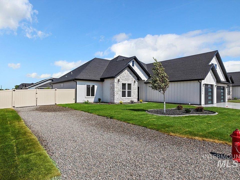 Yes It is DONE! This great looking 2023 built home is Located in PRIME location, just minutes away from Canyon Rim in NW Twin Falls. Great looking curb appeal and entry features LVP floors, a gas fireplace with floor to ceiling stonework and natural light. Quartz and granite countertops, with distressed looking cabinets, an oversized island & top rated appliances, hidden pantry. The large master suite includes lots of natural light, a walk-in closet, dual bathroom vanities, walk-in shower & a soaking tub. Custom trim and tile work, beautiful mudroom, oversized 3 car garage, space for RV Parking on side of the house, fully fenced and landscaping yard. This home have hot water circulation pump, Pella windows, nice size back and side yard, full gutters, bonus room as a 5th bedroom or an office with full bathroom and closet. Owners financing available with discounted interest rate. Call for more info.