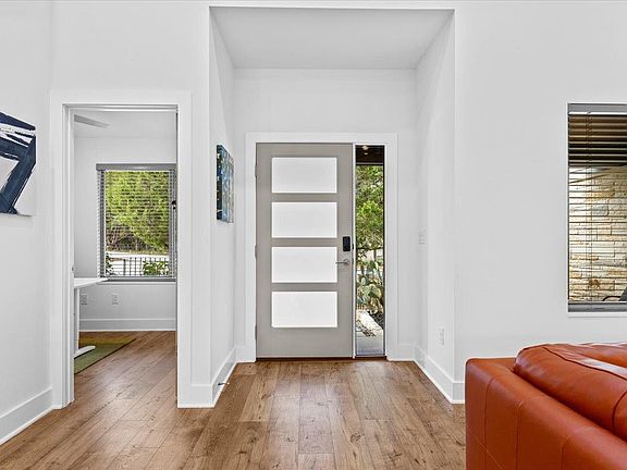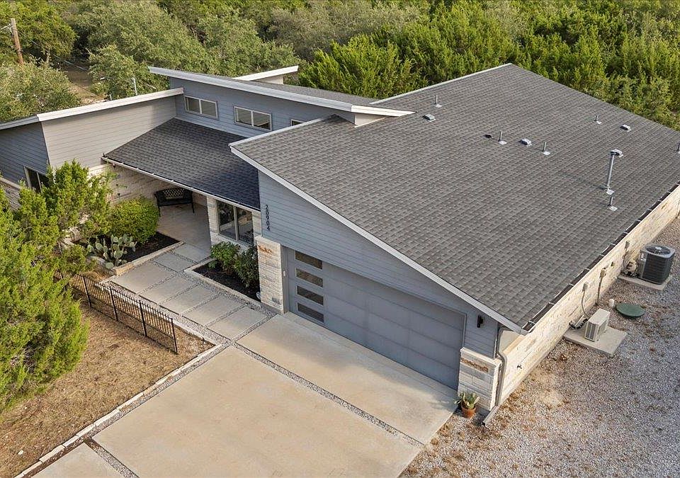 Discover serene Hill Country living in this thoughtfully designed 3 bedroom, 2 bathroom home with a dedicated office, ideally located at the gateway to Lago Vista. Built in 2020 and nestled on a .838 acre estate sized lot, this single story residence offers 1,889 sq ft of modern comfort, privacy, & natural beauty. Step inside to soaring ceilings, expansive modern windows, and a light filled open layout that creates an airy, inviting atmosphere. The well planned floor plan ensures privacy, with spacious bedrooms that each boast large walk-in closets. The primary suite features a spa-inspired bath with an oversized walk-in shower for the perfect retreat! Enjoy working from home in the dedicated office, complete with peaceful views. The garage is equipped with A/C & windows, making it ideal as a gym, workshop, or creative studio. Outdoors, you’ll find endless potential on nearly an acre of tree lined, park like space- perfect for a pool, guest house, or simply soaking in the wooded, private views. Nature surrounds you, with visits from local deer & a forest like ambiance that changes beautifully with the seasons. Located just 2 minutes from local conveniences like grocery stores, Starbucks, gyms, restaurants, & breweries, this home offers both tranquility and accessibility. Community perks include access to parks, and playgrounds. Whether you're sipping coffee on the patio or exploring nearby wineries and hiking trails, this property offers the perfect balance of modern comfort, natural beauty, and an unbeatable Lake Travis lifestyle!