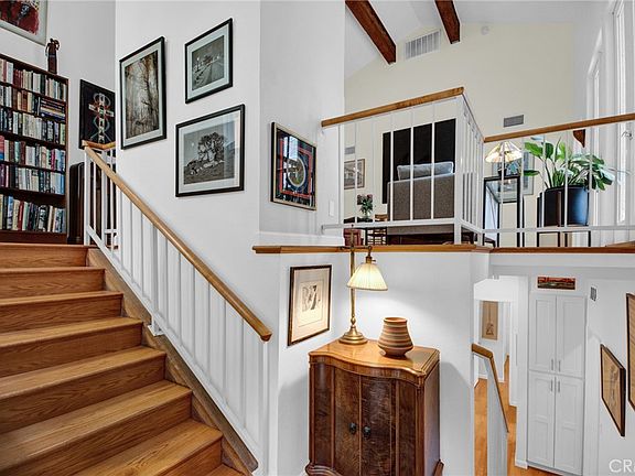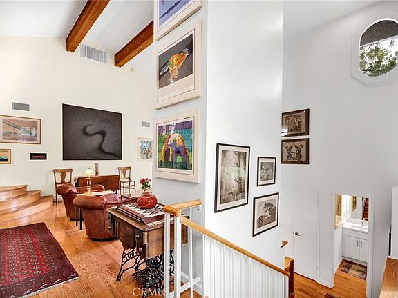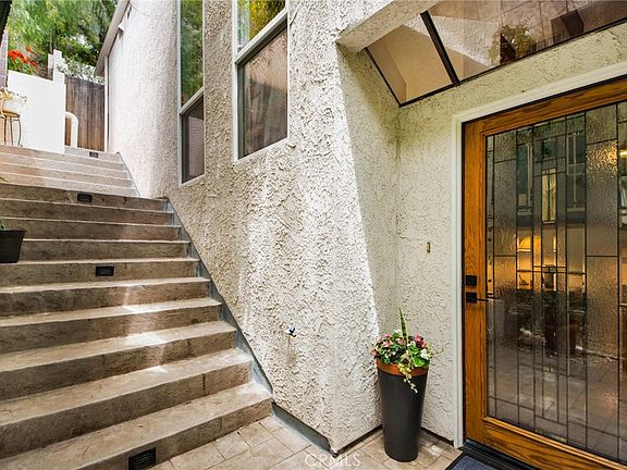 Introducing a beautifully remodeled South of the Boulevard home nestled on a quiet street that ends at the Santa Monica Conservatory area mountains, offering access to numerous hiking trails. This remarkable residence boasts a blend of exquisite design and serene surroundings, making it a true haven for those seeking both tranquility and convenience. Upon entering, you'll be captivated by the living room's grandeur, featuring towering ceilings adorned with elegant wood beams and an inviting fireplace. The recently re-done gorgeous kitchen is a dream showcasing sleek Cesar-stone counters, stainless steel appliances, cabinets with glass fronts, and a counter seating area. Adjacent to the kitchen, a separate den awaits, providing the perfect space for relaxation and entertainment. Step through the two sets of French doors and discover the owner's favorite retreat—a private, quiet, and peaceful concrete and brick patio enveloped by enchanting landscaping. This idyllic outdoor sanctuary offers the ideal setting to unwind and savor moments of tranquility. The residence boasts an array of notable features, including new windows that bathe the interior in natural light, while preserving a sense of comfort and energy efficiency. The presence of oak wood floors exudes timeless elegance, further accentuated by the high ceilings and open floorplan, creating an airy and bright ambiance throughout. The primary suite is a true sanctuary, boasting a tall ceiling adorned with a captivating wood beam. It encompasses a spacious walk-in closet and an updated bath with a separate tub and shower, along with the convenience of dual sinks. Most of the bedrooms feature outdoor balconies, providing breathtaking views of the surrounding hills, allowing you to indulge in the beauty of nature. The beautiful baths have been thoughtfully renovated, incorporating modern design elements and luxurious finishes. Additionally, a separate laundry room with a sink and included washer and dryer adds to the convenience of this three level exceptional home. Two car garage parking with about a one car size storage/ workshop space. Escape the hustle and bustle of city life without sacrificing convenience, as this remarkable home offers the feeling of a serene retreat, while being only minutes away from Ventura Blvd. and Warner Center, offering a plethora of shopping, dining, and minutes from the beach.