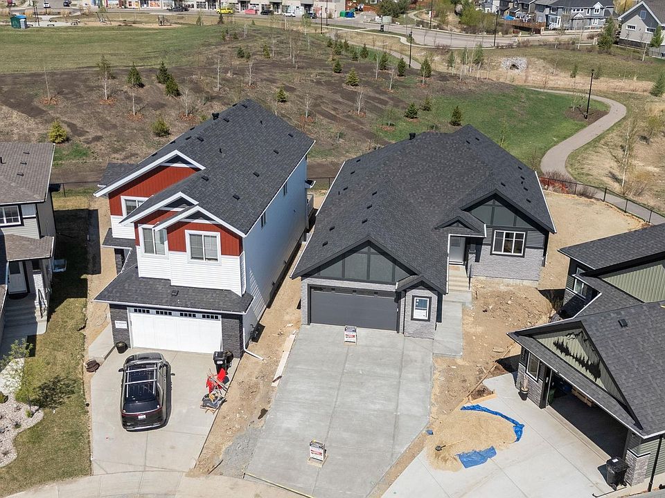 Stunning executive bungalow in Trumpeter offering over 3,200 sq ft of finished space! This 4 bed, 3.5 bath home sits on a wide interior lot with ideal drainage and landscaping. The spacious main floor features a grand living room with fireplace, open-concept dining area, and a chef’s kitchen with quartz counters, large island, and walk-in pantry. Appliances are included.The primary suite includes a luxurious 4-pc ensuite and walk-in closet. A second bedroom with private 3-pc ensuite and a dedicated laundry room add convenience. The fully finished basement boasts 2 large bedrooms, a 4-pc bath, massive rec room, and a custom wet bar—perfect for entertaining. Enjoy an oversized 22'11" x 26’8” garage, upgraded exterior finishes, and rear deck. Located in a quiet, upscale neighbourhood near Big Lake and walking trails with quick access to Anthony Henday. Ideal for families or downsizers seeking style and space without compromise.