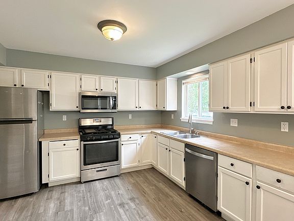 Perfect for a first time homeowner or investor in Plainfield's Lakewood Falls! This 4 bed 2.5 bath home is ready for it's next homeowners to truly make it their own. With 1,950 square feet, this home features low maintenance LVP flooring on both levels. The layout offers formal living/dining, a wide family room, and an eat-in kitchen with pantry. Stainless steel appliances and neutral finishes make it a great canvas for your creativity. All four bedrooms are upstairs, including the laundry room; keeping mechanicals centralized. Slab foundation means one less water concern. The fenced backyard and deck offer outdoor space without excess upkeep. The 2 car attached garage adds storage or tenant accommodating parking value. Located just minutes from I-55 at Weber Rd, with direct access to major job cities (Joliet, Romeoville, Bolingbrook). Groceries, healthcare, and services are within a short drive.