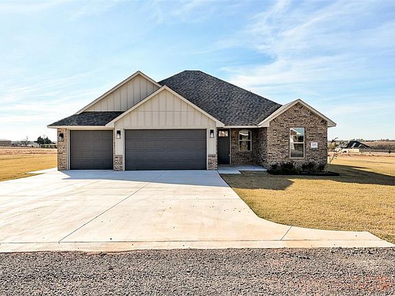 Beautiful 3 bed, 2 bath home located in the brand new Hux Grove addition in Blanchard! Just minutes from the Winter Creek golf course! Floor plan boasts an open concept living area, kitchen, and dining nook. Primary suite features separate his/her vanities, a huge walk-in closet, and a spacious walk-in shower with multiple shower heads. Home has a 3 car garage and covered back patio that is perfect for taking in a gorgeous Oklahoma sunset. You do not want to miss out on this amazing property! **Builder is offering $8,000 for upgrades or closing costs with an acceptable offer!**