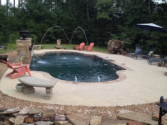 Beautiful home that is move-in ready. Newly painted inside and out. Brand new carpet. Chlorine pool with travertine tile and waterfall wall built in 2012. Washer, dryer, range/oven purchased in 2013. Large free-standing custom island in the kitchen. Trane air conditioner for both upstairs and downstairs was replaced in 2012 and still under warranty. Architectural 30-year roof and double-paned efficient windows were replaced in 2008. Hardi plank cement siding installed 2008 and repainted recently. Covered back porch runs the length of the home and is perfect for an outdoor kitchen area or lots of comfy furniture for relaxing and enjoying the pool view. Speaking of the pool! Beautiful travertine tile and tumbled marble surround this uniquely shaped pool. 6 foot deep in the middle with a tanning ledge and fountains on one end and a curved built-in bench on the other. Waterfall wall on the side is gorgeous and operated on a separate control to be turned off while swimming. Vacuum system makes the maintenance on this pool very easy. Lots of custom amenities inside: gorgeous crown molding and woodwork, matching solid wood interior doors throughout the first floor, separate master suite including master bath and dressing room, custom staircase, induction range in kitchen, ceiling mounted pot rack, wood burning fireplace. Circle drive in the front. Customized entertainment room wired for surround sound and includes an antique post office safe and exterior door with keyless entry lock. Separate laundry area with sink and storage. Built in gun and valuables safe. Very large fenced in area suitable for animals. Total lot size is 2.4 +/- acres. Call your realtor to see it today!
