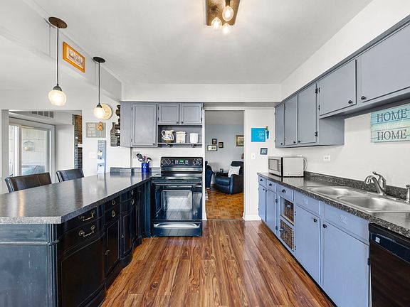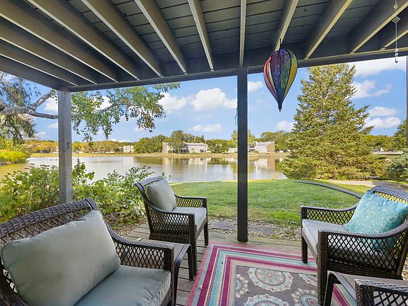 WATER FRONT VIEWS! Discover the perfect blend of comfort and serenity in this first-floor ranch-style condo featuring 2 bedrooms and 2 full baths, including a private en-suite in the primary bedroom. The expansive living room, highlighted by a beautiful fireplace, creates a welcoming atmosphere ideal for relaxation and entertaining. The generous kitchen offers plenty of space for cooking, ample cabinet storage, and dining with a stunning view! Step outside to enjoy two private patios with breathtaking waterfront views-perfect for morning coffee or evening sunsets. Located in a peaceful, quiet area with mature trees, this condo offers the tranquility of waterfront living while still being close to all amenities. The property includes 1 garage space with additional parking available, and convenient access to laundry and storage rooms within the building. HOA fee incudes Heat, Water, Gas, Common Insurance, Exterior Maintenance, Lawn Care, trash, & Snow Removal! If you're looking for a quiet retreat with stunning views and spacious living, this home is ready to welcome you!