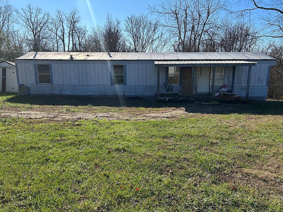 Looking for an investment property or a first time property that payment will be cheaper than rent? Here is a single wide trailer that needs your TLC to make it your own home on nice level to rolling lot. with garden area and storage building. 2 bedroom 1 bath with large open living room/kitchen area.