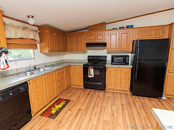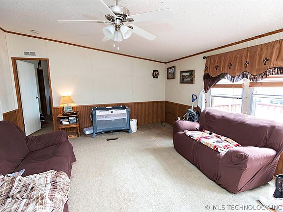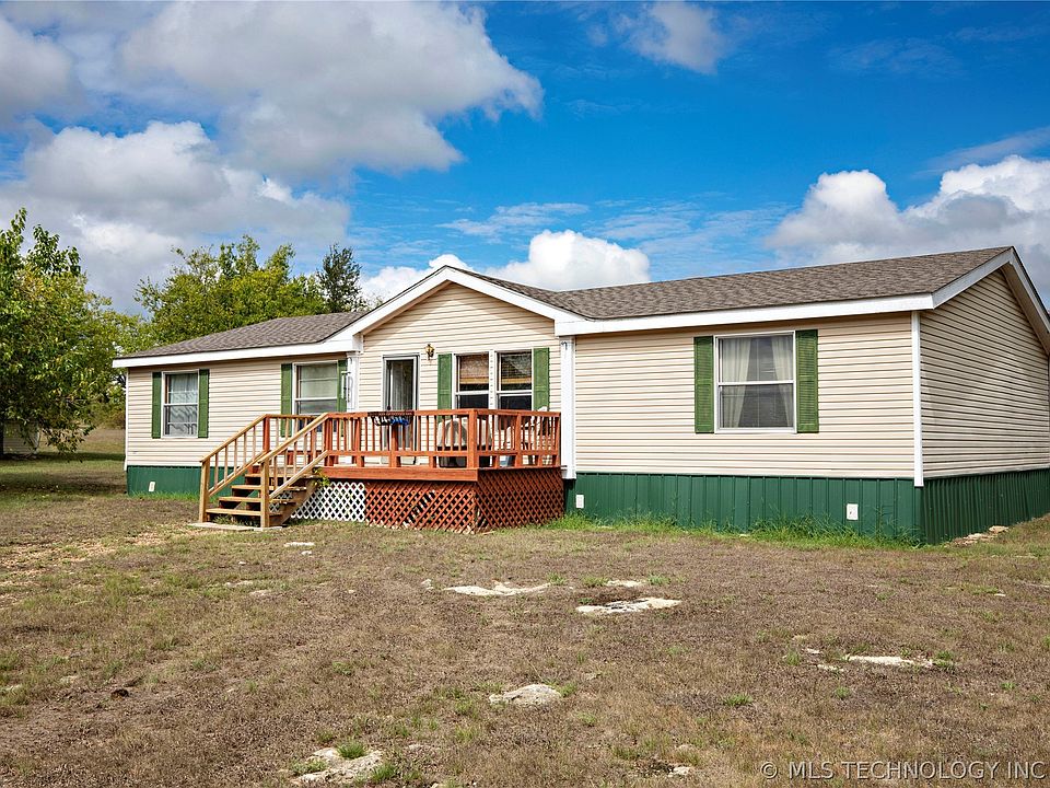 Country Living at its Finest! 4 bedroom 2 bath mobile home sitting on 11.41 acres west of Hugo, Ok. Split living arrangement, breakfast bar and kitchen eating combo. County Road frontage on two sides, fenced for horses or other livestock with loafing shed, storage building, large front and back porches for entertaining guest or watching the abundance of deer in your back yard.