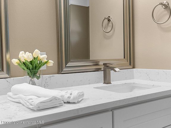 Active Under Contract - Accepting Back Up Offers REMODELED and MOVE-IN READY!! HUGE POOL HOME with a NEW ROOF in 2021 and located in 34609!! 5 bedrooms (YEP! 5 bedrooms!) + 2 bathrooms + 2 car garage + inviting pool with large brick paver covered patio and deck + screened enclosure + fenced backyard!! 2,089 sq ft living; 2,816 total! Brand new kitchen with GORGEOUS Quartz countertops - waterfall edge and breakfast bar!! New real wood white, shaker cabinets! Open floor plan with high ceilings makes this home feel light, bright and spacious! Views or the pool when you walk in the grand entrance...views from the great from, kitchen, dining room master bedroom! The split floor plan offers the privacy for the master bedroom! The remodeled master ensuite bathroom offers dual sinks, beautiful Quartz counter tops, new white sake real wood cabinets and an extra built-in cabinet and Quartz counter tops that really make this master bathroom stand out! Frameless glass walk-in shower! Walk-in closets! All the other bedrooms are on the other side of the home along with the remodeled second bathroom with easy access to the pool! Ceramic tile throughout the whole house...no carpet! Crown molding! The home has a formal dining room and breakfast nook! No lack of space in this home! Use the bedrooms for the family or as home offices for those working from home...or as gym or game/play room! Enjoy your summer days and evenings on the back covered lanai and swimming in the pool, grilling out with friends and family! Large backyard for the kids or pets! Nice shed for extra storage! New landscaping! Gutters and downspouts. NO HOA. NO FLOOD. AC 2017. Close to the Suncoast Parkway for easy and quick access to Tampa for work and play! 30 minutes to Tampa International Airport! Close to shopping, groceries, coffee shops, Foundation stabilized. Engineer's Reports Available. Fully insurable and financeable.