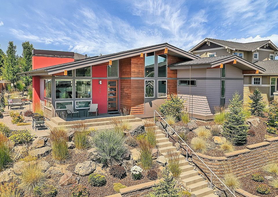 (Buyer's agent fee offered.) Walk into this stunning, sun-lit home with just your suitcase! Professionally decorated, furnished, and equipped with every high-end kitchen appliance, this airy custom-built Mid-Century has all you might desire and more. This must-see single-level home has over 1,850 square feet of indoor living space as well as an epoxied, double-garage with wall-to-wall cabinets and state-of-the art storage options. Beautifully landscaped with indoor-outdoor seating through a set of French doors is ideal for large parties. The elevated location of Lemhi Pass Drive and the soaring ceilings in the living, dining, and primary bedroom make this home feel like it’s floating in the sky. This is single-story living at its best, with a copper, three-sided fireplace, walnut floors, and show-stopping modern bathrooms. There is an outdoor shed for kayaks, winter tires, or other toys. Trails downtown or to parks just out the front door. Walkability to all the restaurants and shopping in the highly desirable NW Crossing neighborhood. This is a rare find! New furniture, photography, and original art from local artists can be found throughout the home. Three Smart TVs. Enjoy the clean lines and unique architecture of this gorgeous home. This house lives larger than its square footage because of its open floor plan, outdoor space, and epoxy-finished garage. The walnut floors throughout the house are gorgeous, elegant look. The kitchen has Dacor appliances with silent, lift-up cabinets. (A brand new $6,000 oven is being installed next week.) The kitchen is made for entertaining with its large island and spacious seating areas, inside and out. Filtered hot and cold-water dispenser at the sink. The living room has a sweeping view over the treetops and neighborhood. A beautiful copper flue over its three-sided open fireplace with artisan textured tile. Has all electric blinds. Both bathrooms, museum-like with colorful tiles and clean lines provide a relaxing experience. Quartz countertops throughout the kitchen and bathrooms add to a high-quality feel. The primary suite has so much storage—many built-in cabinets and a huge walk-in closet. Extra-large driveway can park 3 cars. This home provides beauty and comfort throughout. NW Crossing is a neighborhood unlike any other in Bend. Charming, tree-lined streets and welcoming front porches are thoughtfully designed to provide residents with walkability to restaurants, shops, parks, schools and downtown. Nearly 90 businesses call NW Crossing home! Enjoy breakfast at Sparrow Bakery, lunch at Washington, and then dinner at any of a handful of other wonderful restaurants, all within easy walking distance. This house is less than a block away from biking trails, leading both to the Galveston shopping district and Skyliner, as well as the world-famous Phil's Trail complex. Endless opportunities for biking and walking. With over 50 acres of public parks, miles of trails and neighborhood gatherings, residents never have a shortage of things to do—or people to do it with. Downtown Bend is less than two miles away as is the Old Mill District. Shevlin Park's hundreds of acres are a mere bike ride away. NW Crossing is on the Mt. Bachelor side of Bend, and the river trail is less than two miles away. This is the perfect house and location to enjoy all that Bend has to offer.