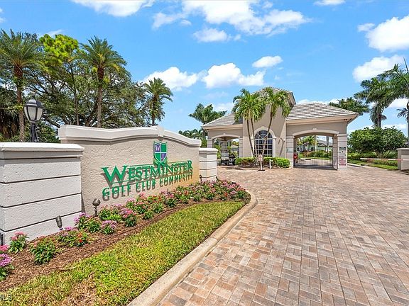 Charming 2 Bedroom 2 Bathroom Gem in the highly popular golf community of Westminster. Guard gated and meticulously landscaped, Westminster is a great fit for those desiring the sunny Florida lifestyle. The home itself overlooks Hole 18 and comes complete with a 2023 roof, newer AC, SS Appliances, open floor plan, and plenty of storage. Westminster is an amenity rich community with numerous social activities, an on-site restaurant, and a semi private golf course that has both pay-as-you-play and membership options keeping the HOA fees affordable! With close proximity to I-75 and RSW, as well as shopping and dining, the location provides easy access to all that SW Florida has to offer. Schedule your private showing today.