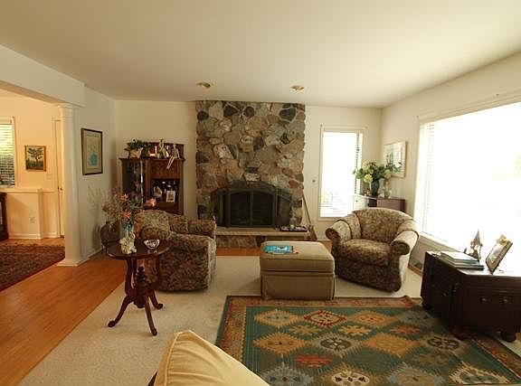 Custom built home on 1.5 acres. 3 bedroom, 3 bath with attached garage. Gorgeous kitchen w/cherry cabinetry. Additional wet bar area w/ice maker. This home offers many unique features (too many to list)including a beautiful stone fireplace in living room. Master suite with private balcony. 3 season room, spacious deck w/hot tub, and paver stone driveway.