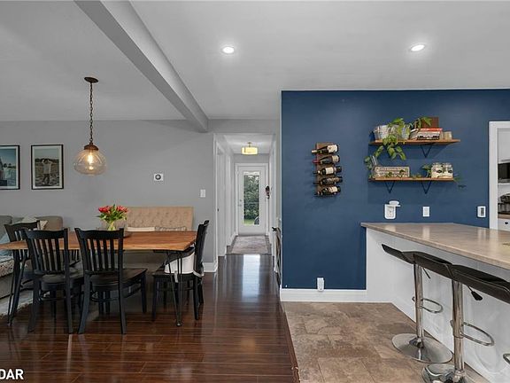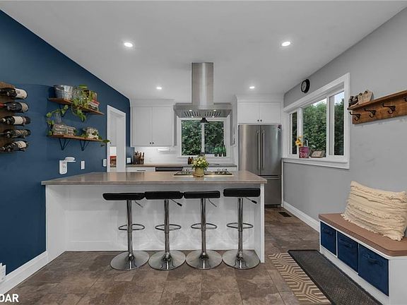 Welcome to 2091 Victoria Street located in the beautiful neighbourhood of Stroud! This charming 1900+ sq ft bungalow sits on a premium 75 x 165 lot and offers 2+2 bedrooms and 2 bathrooms. Step inside to find an open concept main floor with big, bright windows that flood the space with natural light. The updated kitchen with breakfast bar and small butlers pantry boasts new appliances and seamlessly connects to the dining room and living area, accompanied by 2 large bedrooms and 4 piece bathroom. Step Downstairs to your fully finished basement where you'll find vinyl flooring throughout, large rec room, two spacious bedrooms, a newly updated 3-piece bathroom and updated laundry room with custom built-ins for lots of surface and storage space .Step outside to your brand new poured concrete patio with a gazebo, perfect for relaxing or entertaining in your private backyard. The detached garage includes a drive-thru door with a ramp, offering great functionality. This home is truly a gem in a welcoming community, ideal for first-time buyers, small families and downsizers. Updates: Primary closet - 2023 Basement flooring/laundry room/basement washroom - 2021 Waterproofing foundation, new window wells - 2021, New deck - 2021, Roof - 2022, New septic discharge, sump pump, weepers - 2021Patio - 2021, Ramp from garage - 2023, Updated ducts - 2024