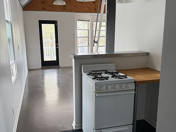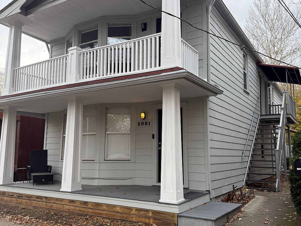 This Tremont apartment is primely located near a beautiful view of downtown Cleveland with Towpath Trail access and a short walk to all the best restaurants on Professor Street. Inside you will find an industrial interior equip with a vaulted corrugated metal ceiling that makes the living room feel spacious. The front porch overlooks W 10th Street and the Cleveland skyline making it a perfect place to relax. Upstairs features a loft with a skylight that could be turned into a second living area, an office space, or even just used for storage. This unit features a forced air furnace and a ductless A/C unit. There is a shared laundry room equip with a washer and a dryer. In the back of the property there is one off-street parking space available that can be accessed from Thurman Ave. Pet friendly unit.