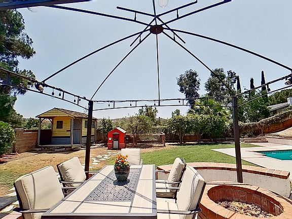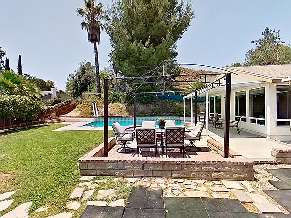 Welcome! Come see your new family home at 20910 Calwood St, in Santa Clarita. Featured in this 4 Bed 2 1/4 bath, single story home, which is sitting on a 9,502 Sq Ft lot, includes a POOL, large patio area, gas fire pit and still room for your imagination ! As you enter the family room you will enjoy the free standing fire place unit, and media entertainment ceiling mounted projector with a roll down viewing screen for everyone to enjoy. Updated kitchen with a newer dishwasher, built in wine rack and dining area. Formal living room upon entry, with a gas fireplace and a garage conversion living quarter with cabinets, which can be converted back. There is also SOLAR attached to the home, which will be paid off in Escrow. Over $35,000 in replacement of the pool pump & heater, the water heater , the AC unit which are also less than one year new. The AC unit has a built in allergen filter. NO HOA, on a Cul De Sac, & peek a boo views from the rear yard!
