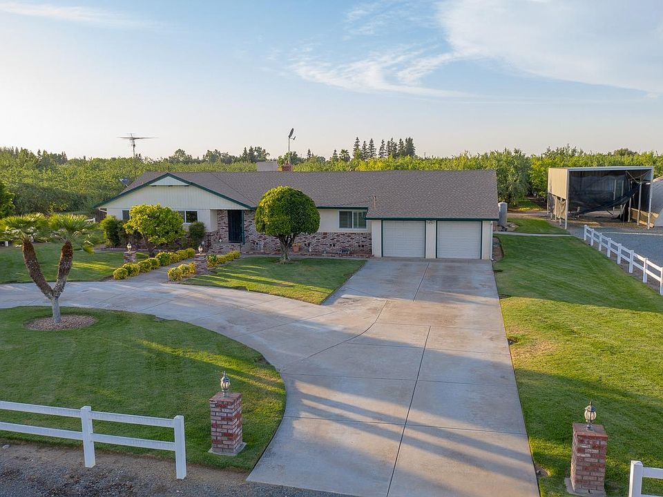 WELCOME HOME! You are going to experience country life that is scarcely found on a dead end street. On 4.7 acres there are mature almonds/leased until 2026, large RV storage and a workshop/garage. For someone that likes the outdoors there is a pool w/sand filter that was just been serviced, outdoor bathroom for convenience and plenty of room for gardening. This 2406 sq ft. 4bd/2.5 bath home offers plenty open space with a added bonus of a family room of approx 28X20. The kitchen features Viking stove top/dbl ovens and a new Bosch dishwasher,new water filtration system and granite counters. New roof in 2015, laminate flooring 2019, partial interior painting 2020, pool resurfaced 2011 and windows/slider door 2013. This is a rare property with a opportunity to make it your own. The only thing missing is you!
