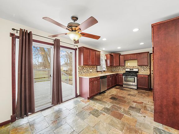 RANCH HOME ON A BIG LOT. SITUATED ON A FULL BASEMENT WITH 3 BEDROOMS AND 2 BATHS. HARDWOOD FLOORS FLOW THROUGH THE MAIN LEVEL INTO THE 2 BEDROOMS ON THE FIRST FLOOR. THERE IS A FULL BATH ON THE MAIN LEVEL AND BASEMENT ALONG WITH A 3RD BEDROOM. THE DINING ROOM CAN BE CONVERTED BACK INTO ANOTHER BEDROOM CREATING A 4TH BEDROOM. SLATE FLOORING COVERS THE UPDATED KITCHEN WITH SS APPLIANCES AND BEAUTIFUL CABINETS. THIS EAT-IN KITCHEN HAS A SLIDING DOOR OUT TO THE DECK WITH GRAND VIEWS TO THIS 1/2 ACRE YARD. THE HUGE YARD HAS MATURE TREES, FIRE PIT AND A FENCED IN GARDEN AREA. A WIDE ASPHALT DRIVEWAY LEADS TO THE 1 CAR ATTACHED GARAGE. CLOSE TO SHOPPING, I57 & METRA COMMUTE TO CHICAGO. FHA AND VA LOANS QUALIFY AND HOME WARRANTY IS PROVIDED.