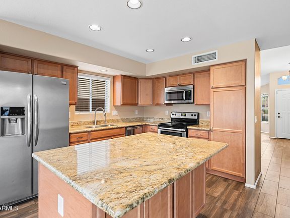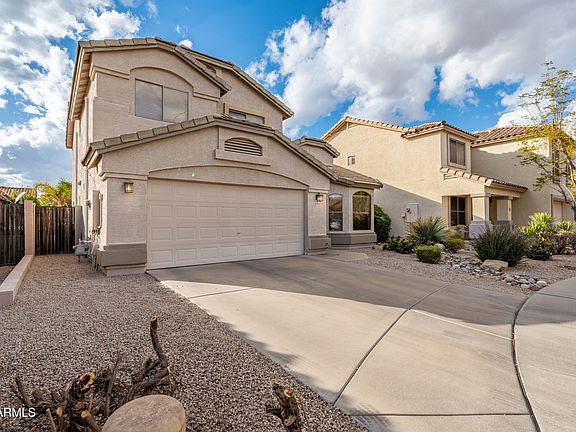 Turnkey, cul-de-sac, 4-bed, 2.5-bath home in Desert Ridge. This well maintained home features a stylish kitchen, a living/dining combo, and breakfast bar. All bedrooms upstairs. Downstairs powder room. All appliances convey with sale. 5 piece bathroom in primary bedroom. The home offers a 5-zone climate control system for maximum comfort, includes a 5-ton central AC unit, a dedicated mini-split in the primary bedroom, and a multi-zone mini-split servicing 3 additional areas. This allows for customizable temperatures throughout the home, keeping interior temperatures in the 60s even on the hottest days. The exterior is designed for easy maintenance, with a desert hardscape front yard and a grassy backyard. A two-car garage provides ample parking/storage and an EV charger. Priced to sell