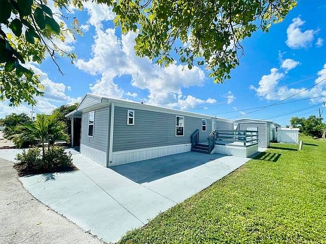 SPECTACULAR FULLY RENOVATED 2 BED 1.5 BATH HOME LOCATED AT CARIBBEAN NAPLES! This 1983 PALM Home is like NEW! Flooring, walls, paint, appliances, central HVAC, windows all only 3 years old. Great location in the park, located at the end of the street with a corner lot that is nicely landscaped. Inside this home you can enjoy a spacious living area with an open kitchen, Large master bedroom and laundry is located inside the unit. Nice size guest bedroom that also comes with a half bath. Outside living is awesome as well! Very Inviting covered screened porch on one side and a large deck on the other makes this a unique family friendly retreat in Paradise! This is a great investment for rentals, as a winter home, or for year-round residency. This 55+ community is pet friendly and includes all the amenities you could imagine including a recently built pool, hot tub, clubhouse, gym, billiards room, shuffleboard, horseshoes and additional storage. The lot fee is $1020 per month which includes your lawn, trash and amenities. This community is close to everything including shopping, restaurants, the beach and quick commutes to US-41 and I-75. Come see what Florida life is all about!