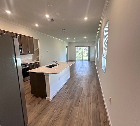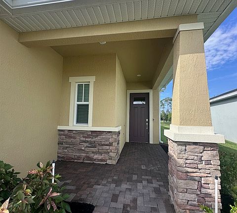 Welcome to your brand new home where everyday is a vacation! Come live in the new 55+ resort style community. This beautiful never lived in cozy 3 bedrooms, 2.5 bath home with open floor plan offers high ceilings, lots of natural light, a nice kitchen with stainless steel appliances and quartz countertops throughout. Laminate flooring in the living areas, tiled bedrooms and carpeted stairs to an open bonus room. Double sink vanities in the guest and master bathroom. Washer/dryer hookups. Some perks of the home are lots of closet space, extra storage space, impact windows and nice covered patio with partial pond view and conservation for some privacy. Great location with access to I-95, shopping and restaurants. Enjoy all the amenities the community has to offer such as fitness center, tennis and pick ball courts, bocce ball swimming pool, walking/biking trails, and a clubhouse that offers a theater room, card room and cafe area. The best of Florida living!