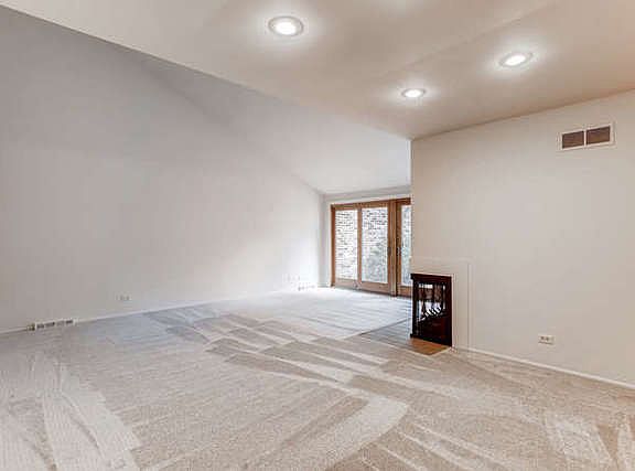 One of the few ranches in the Stream Garden Villa. Located on Creekside feels more open than other units located in the interior of the development. Sidewalk leads to Atten Park and Prairie Path. Vaulted ceilings in the kitchen and living room plus floor to ceiling window sliders in all the rooms flood the unit with sunlight. Newly painted and capeted make it move in ready. Enjoy the privacy of 2 enclosed patio spaces. 2 car attached garage and partially finished basement with laundry.