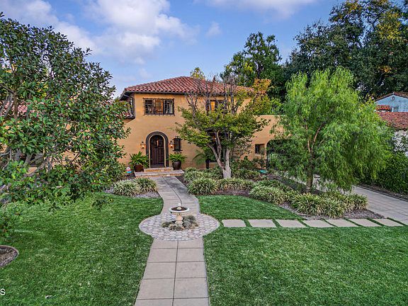 This exceptional 1927 Spanish revival estate is truly one of Altadena's most remarkable properties, offering resort-style living on the highly sought-after Midlothian Drive. Thoughtfully updated by the current owners with impeccable attention to detail and quality craftsmanship, this home seamlessly blends timeless architecture with modern luxury. The main house includes 4 spacious bedrooms with 4 full baths, including a steam shower in the primary bath. The formal living room features a gorgeous fireplace, large picture windows, and built-in bookshelves. Built for large-scale entertaining, the formal dining room showcases French doors and built-ins, all illuminated by a stunning vintage wood-carved chandelier. The heart of the home is the elegant chef's kitchen, featuring marble counters, a walnut center island, Sub-Zero refrigerator and Sub-Zero freezer, Dacor stove, wine refrigerator, and new Miele dishwasher. Enjoy your morning coffee in the separate breakfast room, offering a lovely view of the yard and mountains. The family room features a high-beamed ceiling, built-in bookshelves, and an impressive picture window with breathtaking views of the landscaped rear yard. That's just the main house! Your overnight guests will want for nothing in the 1 bedroom, 1 bath guest house, outfitted with stunning finishes and two Zephyr refrigerators next to the Fisher and Pakel two-drawer dishwasher. French doors and windows open completely to take in the lush landscaping of the rear yard. The property also includes a bonus room/office attached to the rear of the garage featuring two custom wood-paneled refrigerators. Enjoy a stunning array of outdoor amenities, including a newer PebbleTec swimming pool and separate spa, all operated remotely using the Aqualink app. There is no shortage of activity here with a lighted pickleball and basketball court, plus a bocce ball court--all surrounded by lush lawns, mature trees, and beautifully landscaped grounds. Recent updates include solar power, dual-zone HVAC, upgraded copper plumbing and electrical systems, foundation bolting, a Sonos sound system, smart home technology, elegant new window treatments, and exquisite designer light fixtures throughout. This is a rare opportunity to own a heritage home that perfectly captures the Southern California lifestyle--historic charm, modern comfort, and resort-like living in one of Altadena's most coveted neighborhoods.
