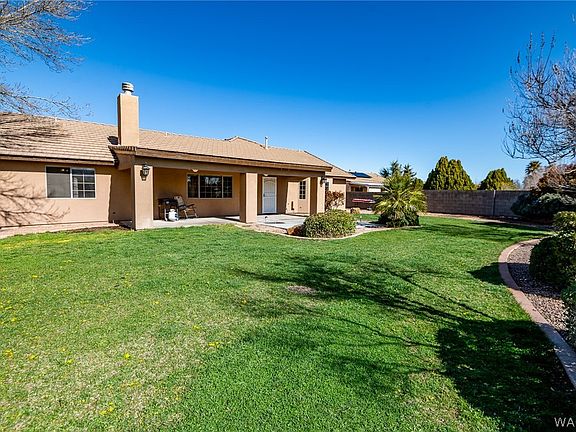 Watch the sunrise in your private Arizona Oasis. Beautifully maintained home on a large lot, private backyard situated against the Mohave Wash, no future building to block your view of the Hualapai Mountains. 3 car garage, RV parking, tile roof, stone accents wrap the front of the home. The backyard will make you forget you're in Arizona. Large cover patio with ceiling fans, mature trees and a block wall. Interior provides brand new carpet, gas-log fireplace, vaulted ceilings, pot shelves, ceiling fans, recessed lighting, open floor plan, bay window, Corian countertops, all appliances stay, laundry room is filled with storage, large primary bedroom with another bay window, walk-in closet and dual sinks. Located close to all amenities and just 5 minutes from the hospital! Owner/Agent