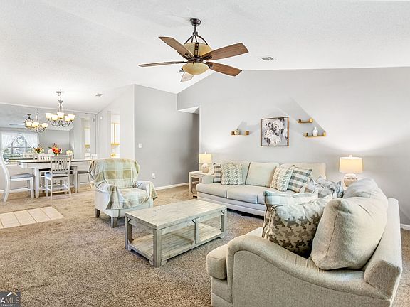 Spacious condo living at its best; here you have the size of a single family ranch with less maintenance. Come home to this 3 bedroom/2 bath condo in the established, gated Rolling Hills neighborhood. Top floor unit is in a quiet corner of the community-tucked away in the back. Two deeded parking spaces are yours when you arrive home. The vaulted ceiling in the living room makes this already spacious condo feel even larger than it is as soon as you walk in the door. A bay window and a fireplace with brick surround make the Neutral paint colors & finishes throughout, make this home an easy backdrop for your personal aesthetic. The eat in dining room is right off the kitchen. A separate laundry and utility room off the hallway has extra room for a small freezer, a small second refrigerator, beverage cooler or shelving for more storage and organization. Oversized primary bedroom has a walk in closet and a balcony that overlooks green space & trees- no parking lot or other building views here, just a peaceful spot for watching the birds with your morning coffee. Both secondary bedrooms are sizable with views to the green space and trees as well. Need more storage? There is a secured storage room off the front porch-perfect for hobby gear or those holiday items you only pull out once a year. Community pool, mail center & dog park are all located in the community as amenities to the residents. Located right off the exit of I75, this community is centrally located to everything Valdosta has to offer! Shopping, restaurants, grocery & many other retailers are within close proximity. Easy access to Valdosta State University (less than 2 miles) & Moody AFB (less than 13 miles).