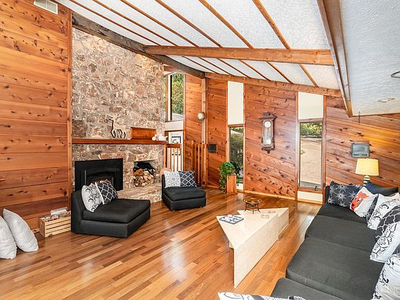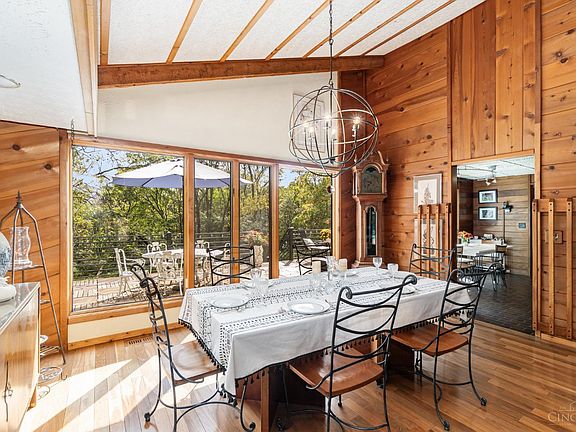 Pride of ownership shines in this 4+ bedroom contemporary retreat set on over 4 private wooded acres with its own tennis court! Vaulted ceilings, a striking stone fireplace, and hardwood floors flow through the living and dining rooms. The eat-in kitchen with island opens to the family room, sunroom, and expansive deck overlooking wooded views. The 1st floor primary suite boasts double vanities and adjoining bath. A second floor large laundry/craft room and finished lower level with rec room, full bath, and workshop add versatility to this unique home. The home also includes geothermal heating and electric vehicle charging.